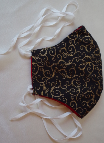| | Black and gold face mask - CURRENTLY OUT OF STOCK | Cotton face mask, individually made and triple layered with open ends for inserting a filter if required. We have attached tie ups and we include a piece of elastic so you can adapt the mask should you wish to.